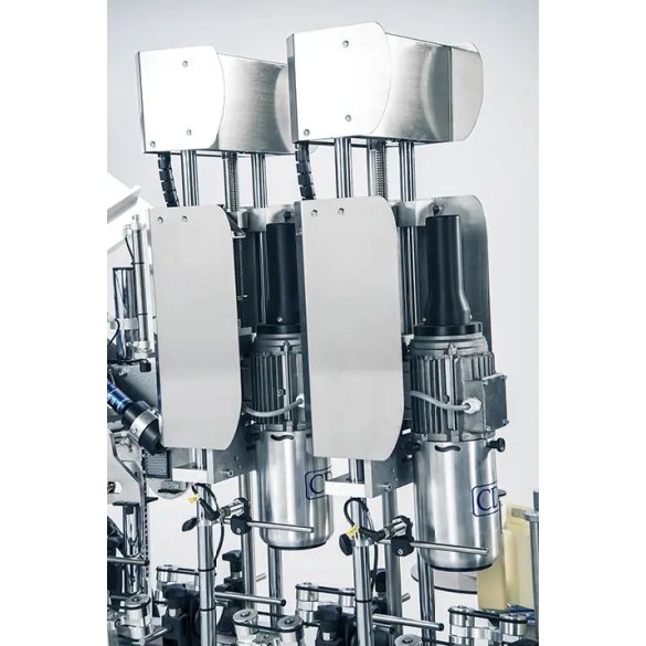 - Crimping of metal or PVC caps (two 8-roll crimpers or two thermal bells)