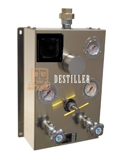 Safety valve, tank for nitrogen installation. The valve is also designed to protect the wine with an inert gas, in this case nitrogen, without causing an increase in pressure in the tank. The