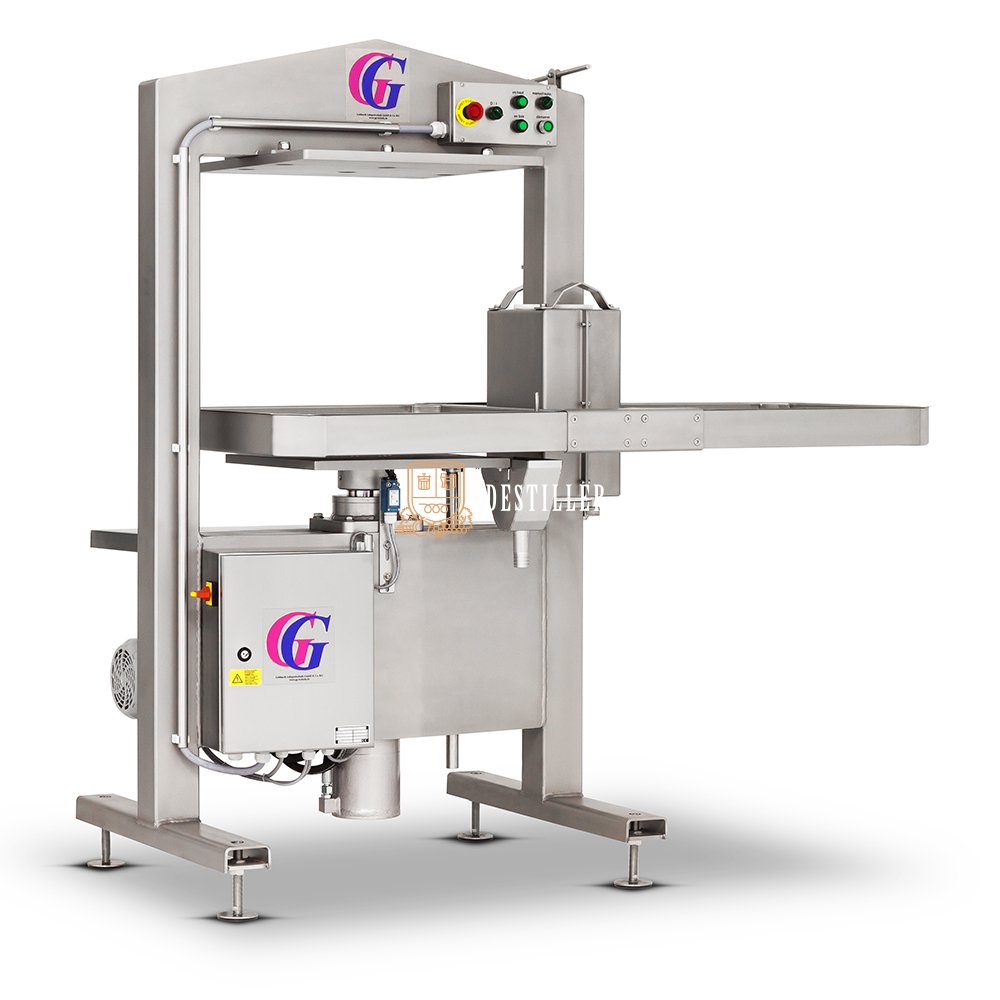 The Packing Press is entirely made of stainless steel. The best juice quality and juice yield is achieved in using the integrated automatic