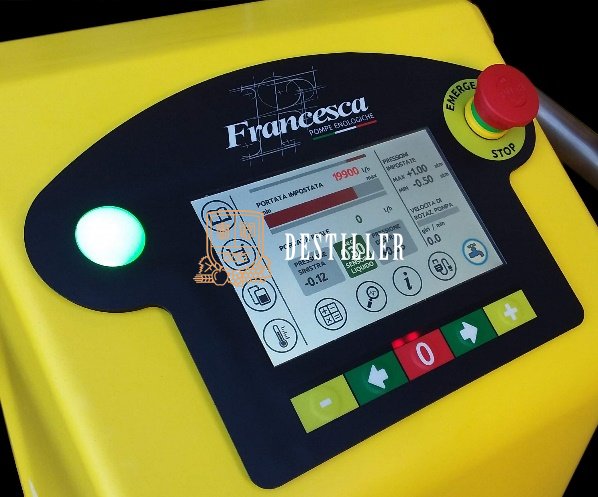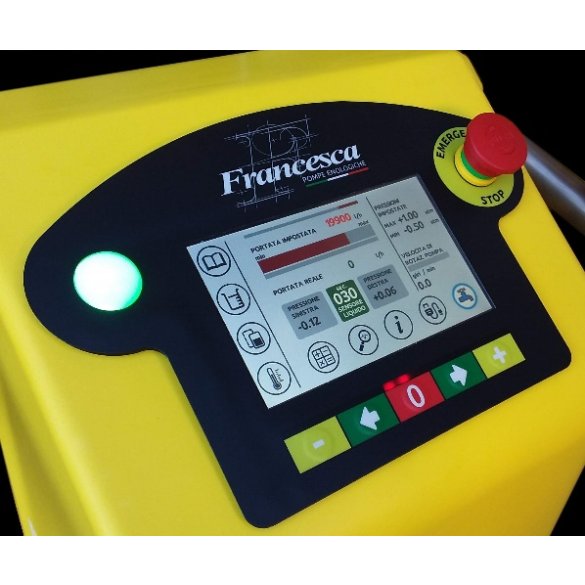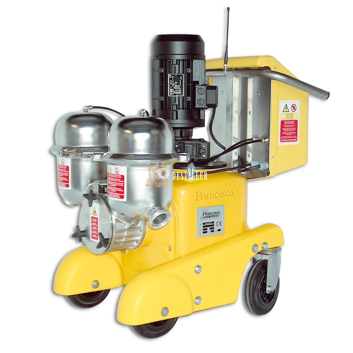 Patented oenological pump with rubber lobes, self-priming, dry pump up to -8.5 meters, with manual and automatic flow rate adjustment. Parts in contact with the liquid are made entirely of AISI 304 and 316 stainless steel. Perfect for use in wineries: transporting destemmed grapes, musts, and wine, pumping, filtration, bottling, and heat exchanger passage. Optimal for filling and emptying barrels. Easily washable and sterilizable, it allows for precise, complete inspection of parts in contact with the product. Very low impeller rotation speed.